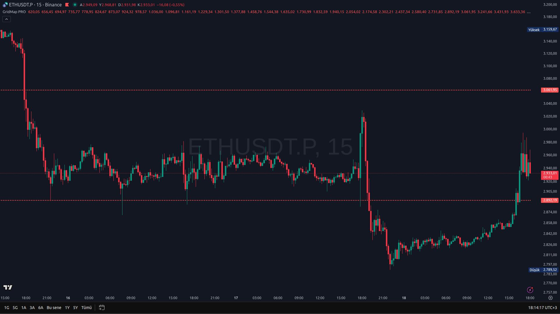 - Take-profit, bir veya iki üst GridMap kademesi olabilir; ancak tepki hareketi zayıfsa veya momentum hızlı sönüyorsa erken çıkış düşünülmelidir.