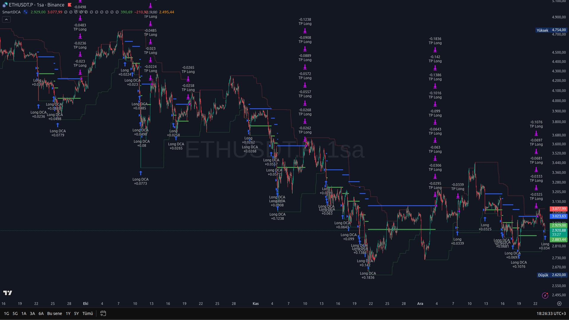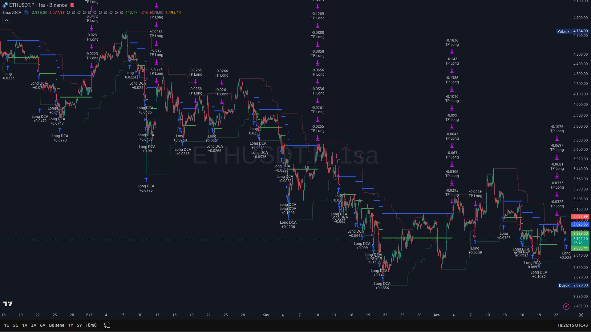 Doğru periyotla kullanıldığında bu yaklaşım, teknik olarak Bollinger Bantları’nın uç bölgelerine benzer bir davranış sergiler. İstatistiksel olarak bu girişlerin önemli bir kısmı ilk adımlarda sonuç üretir. Elbette bazı durumlarda fiyat, uzun süredir devam eden bir yapıyı kırarak daha sert hareketlere de zemin hazırlayabilir. Ancak SmartDCA, bu senaryolara karşı zaten hazırdır.